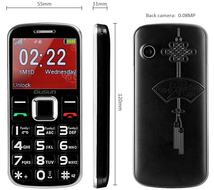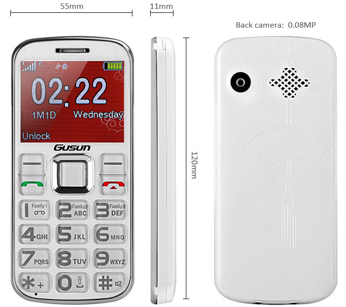 Elder Gente del teléfono móvil F101 banda cuádruple Gran teclado Grandes Fuentes Cámara FM Radio Dual SIM